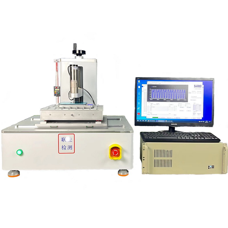 通過電腦控製音圈馬達帶動測試頭按壓屏幕。精確的運動控製機構可以保證位移和速度的準確定。力量傳感器實時監控測試過程中的壓力值,並保存至電腦軟件,進行數據分析和判定。